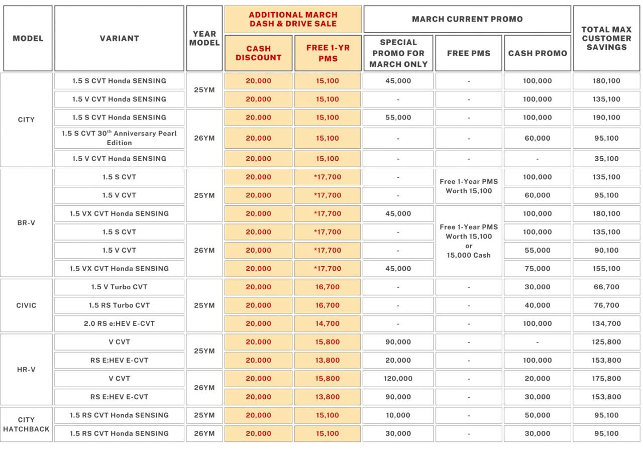 Honda PH offers extra discounts, free PMS in latest March sales promo